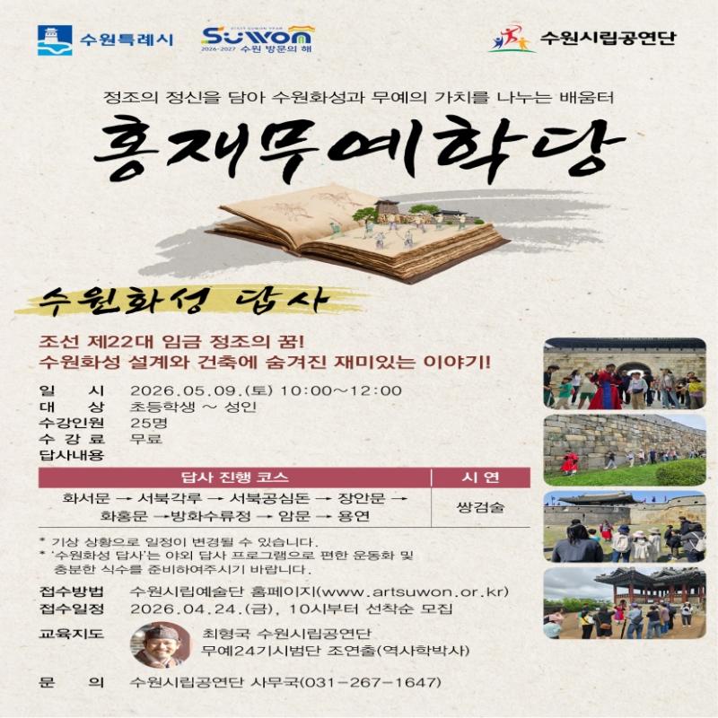 ![문화가 있는 날에 만나는 수원광교박물관, 일시: 2026.4.29., 5.27. 9.30. 마지막 주 수요일 문화가 있는 날, 장소: 수원광교박물관 야외, 문의: 031-5191-4174, 4/29 [어린이 국악 뮤지컬] 동물원에 간 고양이](/webcontent/banner/2026/3/31/f6dd96c9-3312-4821-a6a6-b1579dec9af3.jpg)