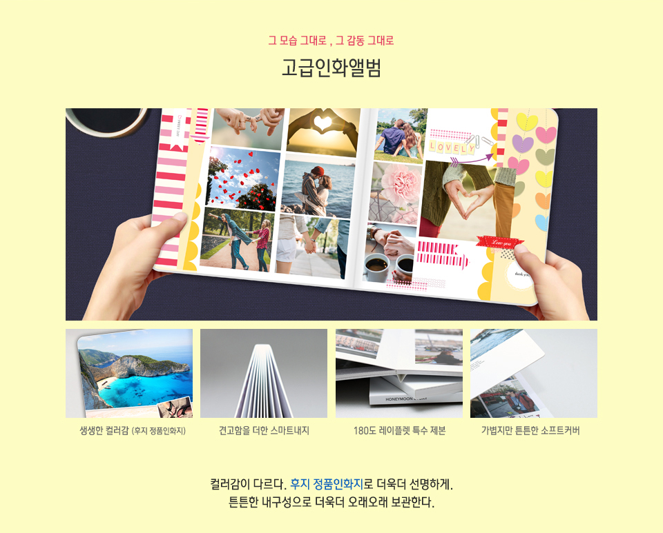 본 이벤트 제품은 고급인화앨범이며 여행,육아,커플,가족 등 다양한 사진들로