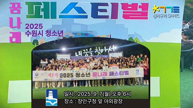 동영상 활동사진 동영상 홍보자료 행사일정 청스펙 SNS 인스타그램 바로가기 페이스북 바로가기 유튜브 바로가기 게시물 검색 제목 내용 제목+내용 검색 총 6건 [ 1/1 페이지 ] (25.07.05.~06.) 청개구리 스펙 학부모 서포터즈(스펙터즈) 가족캠핑 「여름, 휴일에는 가족과」 2025/10/30 조회 : 2 청개구리 스펙 학부모 서포터즈 '스펙터즈' 홍보 음원 녹음 현장 속으로 2025/10/30 조회 : 1 (25.09.07.) 청개구리 스펙(SPPEC)과 함께하는 2025년 청소년 꿈나래 페스티벌 2025/10/29 조회 : 1 (25.08.03.) 연합뉴스TV 리부팅 지방시대 <초등학생 줄던 수원의 '반전'> 2025/08/27 조회 : 3 (25.02.04.) 2025년 도도한 프로젝트 개강식 2025/06/09 조회 : 16 (24.12.15.) 2024년 청개구리 스펙 성과공유회 2025/05/27 조회 : 15 1 콘텐츠 만족도 조사 이 페이지에서 제공하는 정보에 대하여 어느 정도 만족하셨습니까? 만족도 조사 매우만족 만족 보통 불만족 매우불만족 담당자 정보 담당자 정보 담당부서 교육청년청소년과전화번호 031-5191-3993