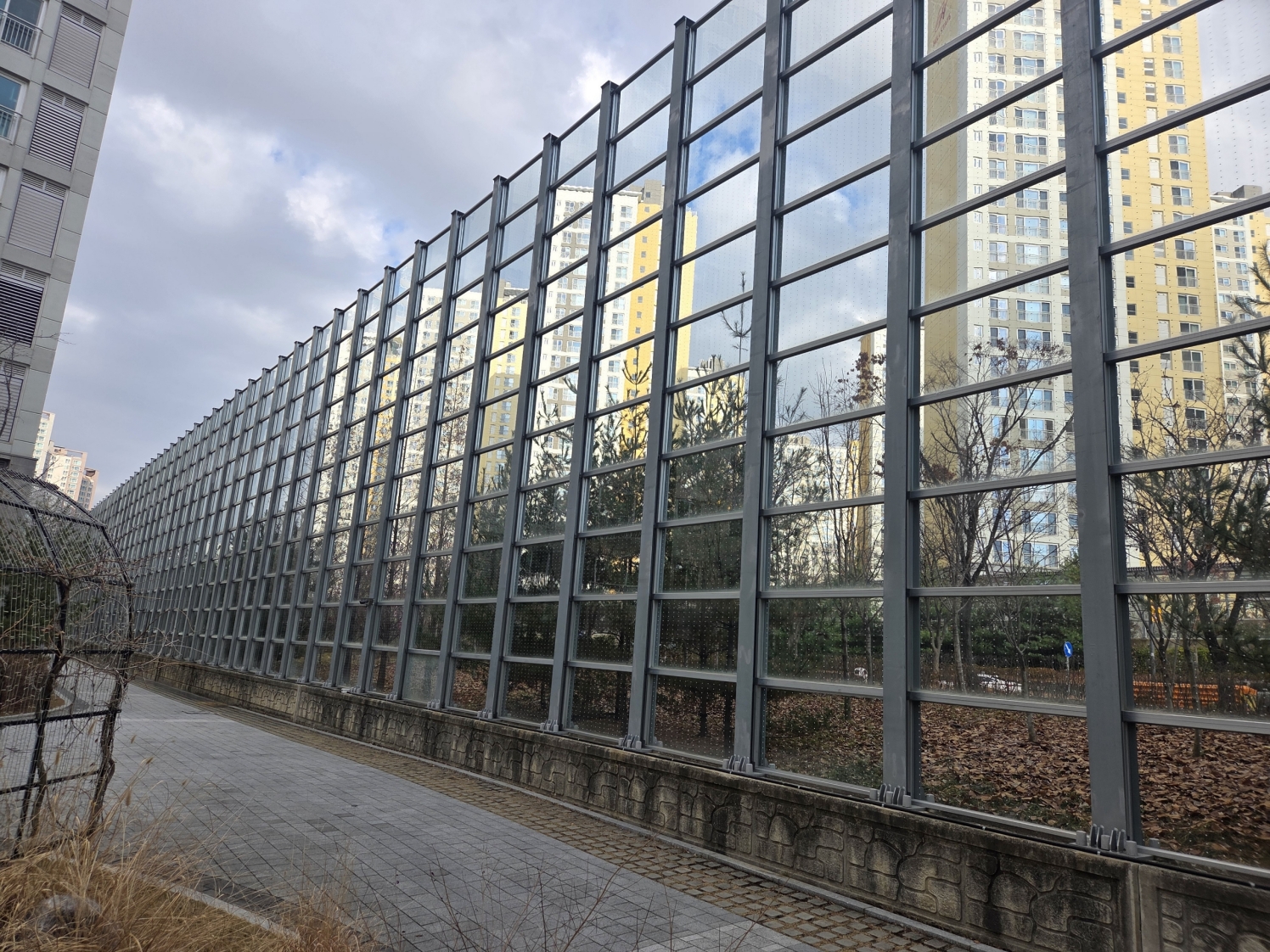 | 수원특례시, 영통아이파크캐슬1단지 투명방음벽에 조류충돌방지 테이프 시공 지원 | |||||||||||||