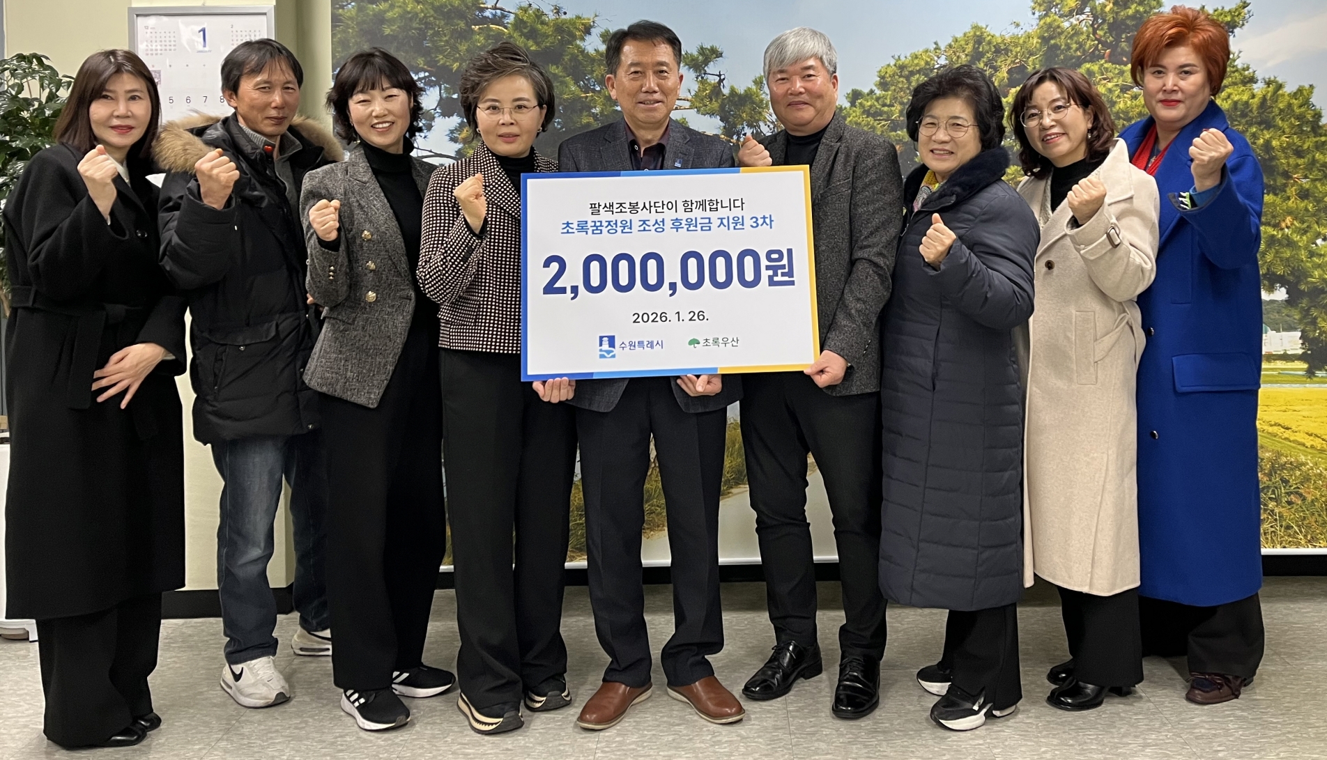 수원 팔색조봉사단, 초록꿈정원에 기부금 전달 초록꿈정원 기부 프로젝트, 시민 참여 바탕으로 정원 조성하고, 지속 가능한 녹지환경 만드는 사업