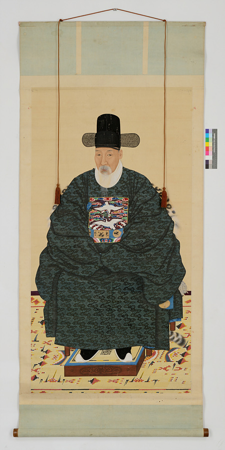 이 초상의 얼굴 모습으로 볼 때 시복본 초상(보물)과 흡사한데, 안면과 옷주름의 입체감 표현, 투시도법에 의한 화문석, 족좌와 의자의 사선배치는 역시 이명기의 초상화법으로 볼 수 있다. 그림을 그릴 때 쓰였던 유지 초본도 남아있다.