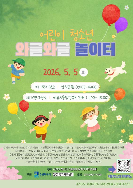 ![문화가 있는 날에 만나는 수원광교박물관, 일시: 2026.4.29., 5.27. 9.30. 마지막 주 수요일 문화가 있는 날, 장소: 수원광교박물관 야외, 문의: 031-5191-4174, 4/29 [어린이 국악 뮤지컬] 동물원에 간 고양이](/webcontent/banner/2026/3/31/f6dd96c9-3312-4821-a6a6-b1579dec9af3.jpg)