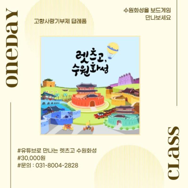 자세한 답례품은 고향사랑e음에서 확인하세요. 수원시 답례품 보기 전체보기 지역화폐 관광기념품 관광서비스 이용권 농축산물 가공식품 원데이클래스 공예품 시 캐릭터 상품 피크닉 세트 스포츠 상품 게시물 검색 상품명 검색 총 3건 [ 1/1 페이지 ] 렛츠고 수원화성 프로그램 30,000p 수원화성 블록 키트 5,000p 천연비누(샴푸바&린스바) 원데이클래스 30,000-50,000p 1 콘텐츠 만족도 조사 이 페이지에서 제공하는 정보에 대하여 어느 정도 만족하셨습니까? 만족도 조사 매우만족 만족 보통 불만족 매우불만족 담당자 정보 담당자 정보 담당부서 자치분권과전화번호 031-5191-3707
