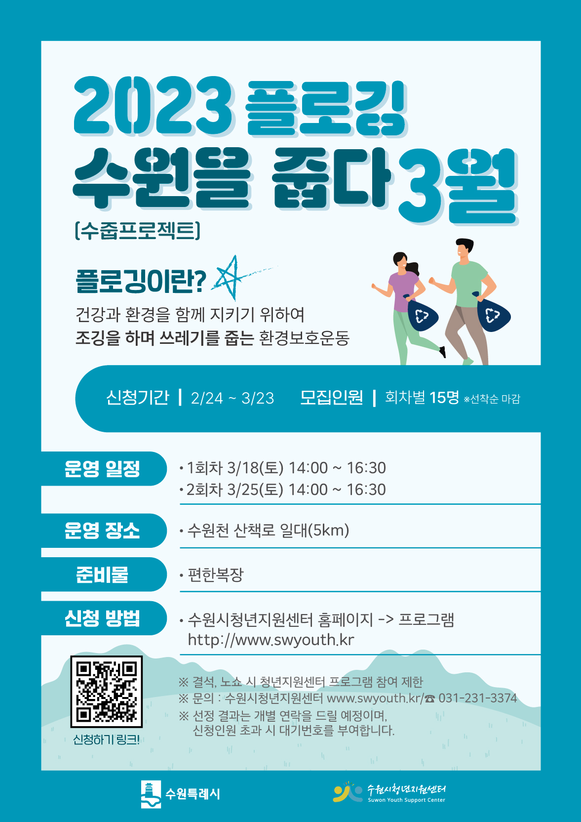 | 2023년 청년지원센터 플로깅 '수원을 줍다' 참여자 모집 | |
