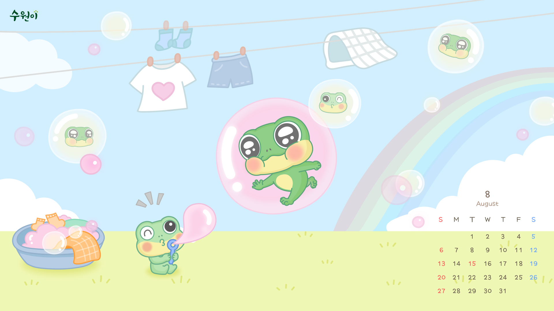 | 수원이 캐릭터 8월 휴대폰, PC용 달력 이미지 무료 배포 | |