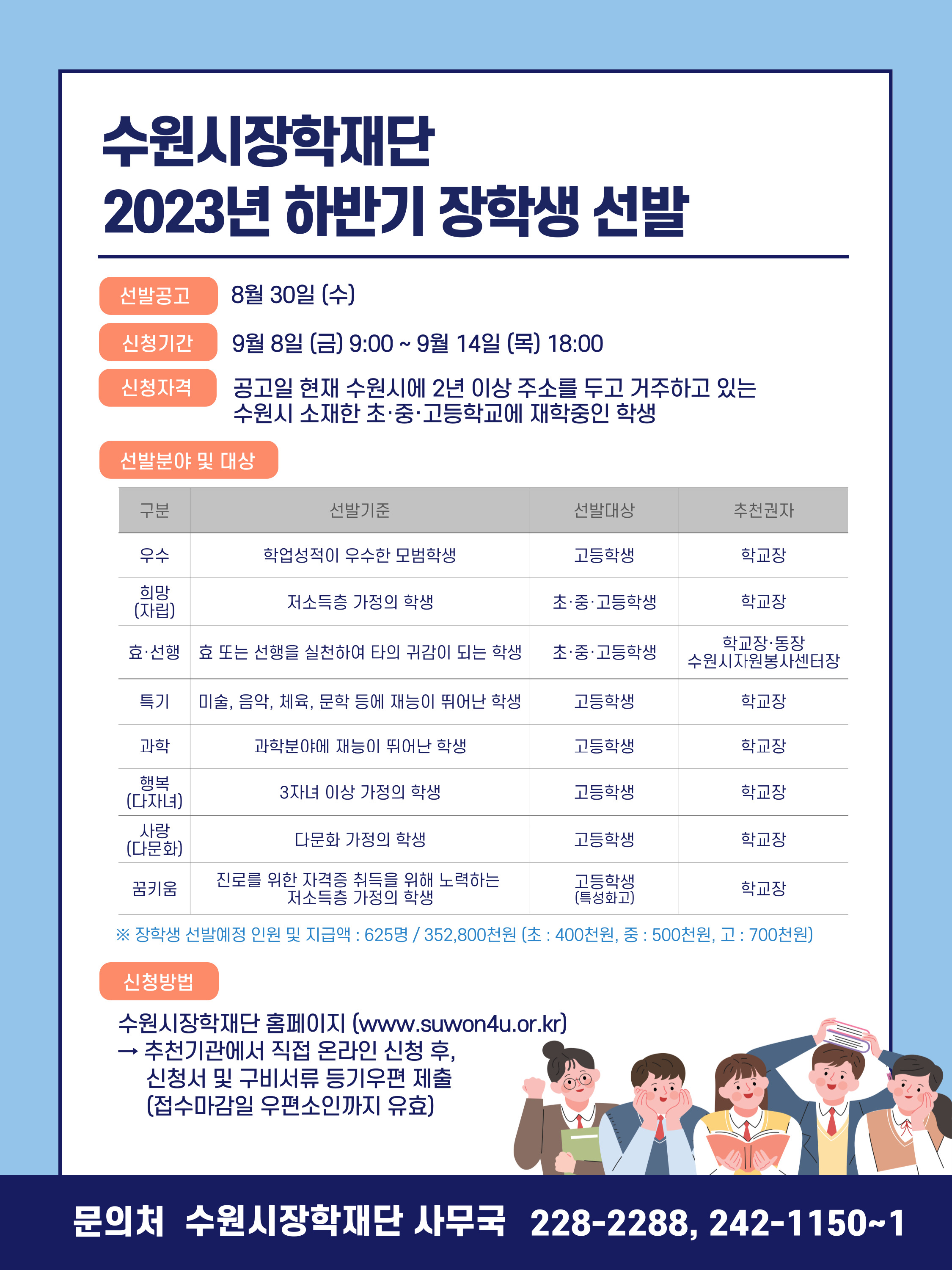 | 수원시장학재단 2023년하반기 장학생 선발 | |
