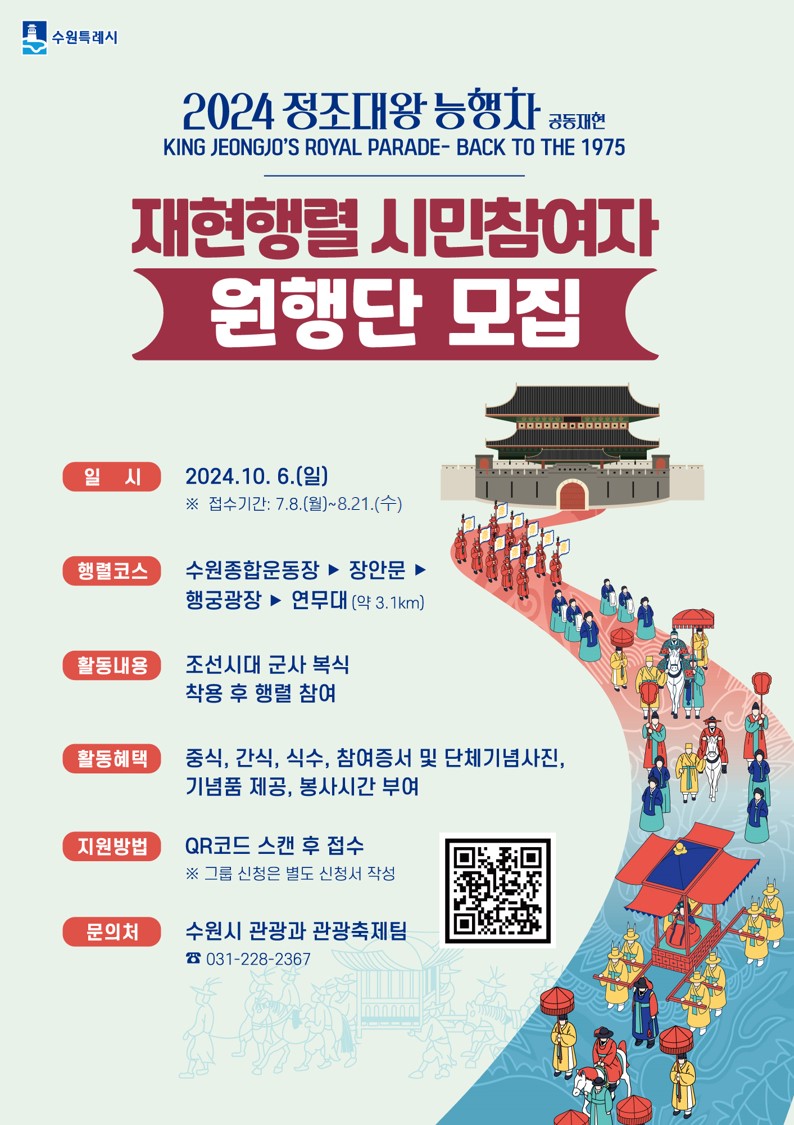 | 2024 정조대왕 능행차 수원 중점구간 시민참여자 <원행단> 추가 모집 | |