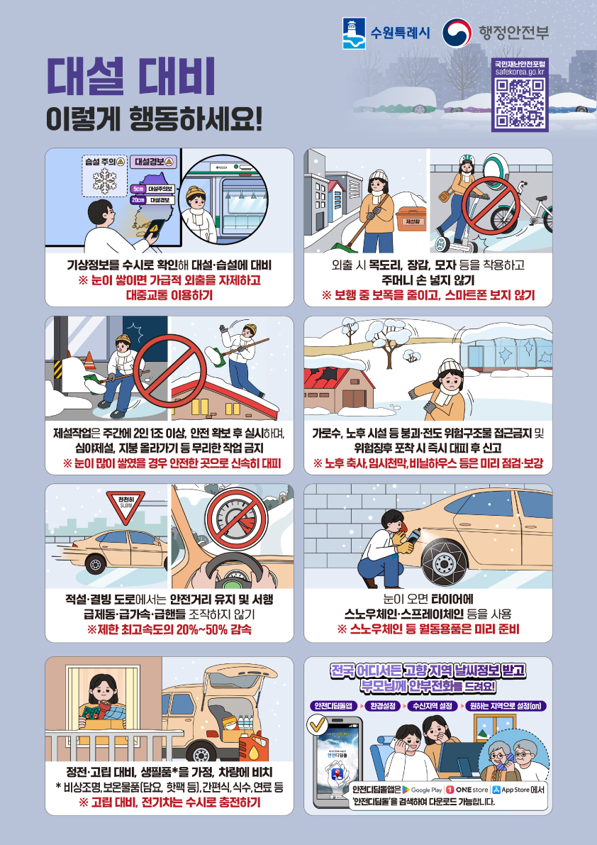 겨울철 자연재난(대설, 한파) 행동요령 홍보물입니다. 아파트 게시판 등 많은 활용하시기 바랍니다. ![]() ![]() |
