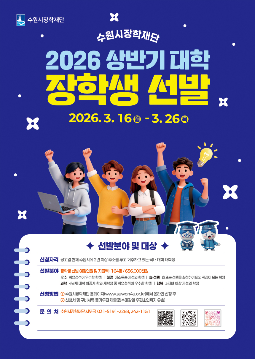 | 수원시장학재단 2026년도 상반기 대학장학생 선발 | |
