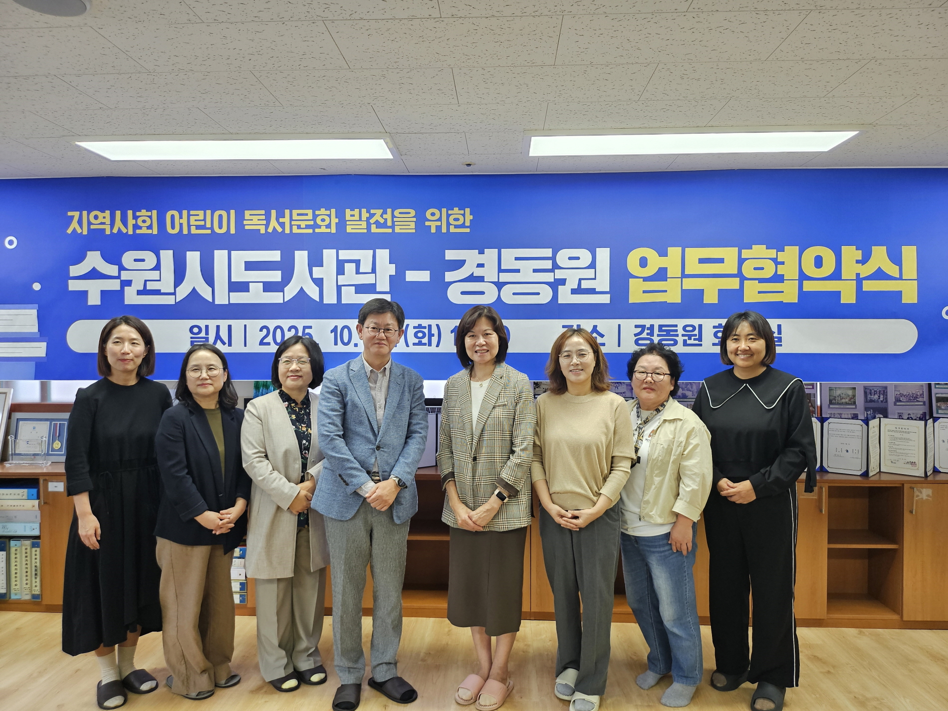 수원시도서관, 경동원 어린이들에게 다양한 독서문화 프로그램 제공한다 수원시도서관과 경동원, ‘교류 협력을 위한 업무협약’ 체결… 경동원 어린이 대상 독서활동 프로그램, 도서 기부, 독서 서비스, 공연 등