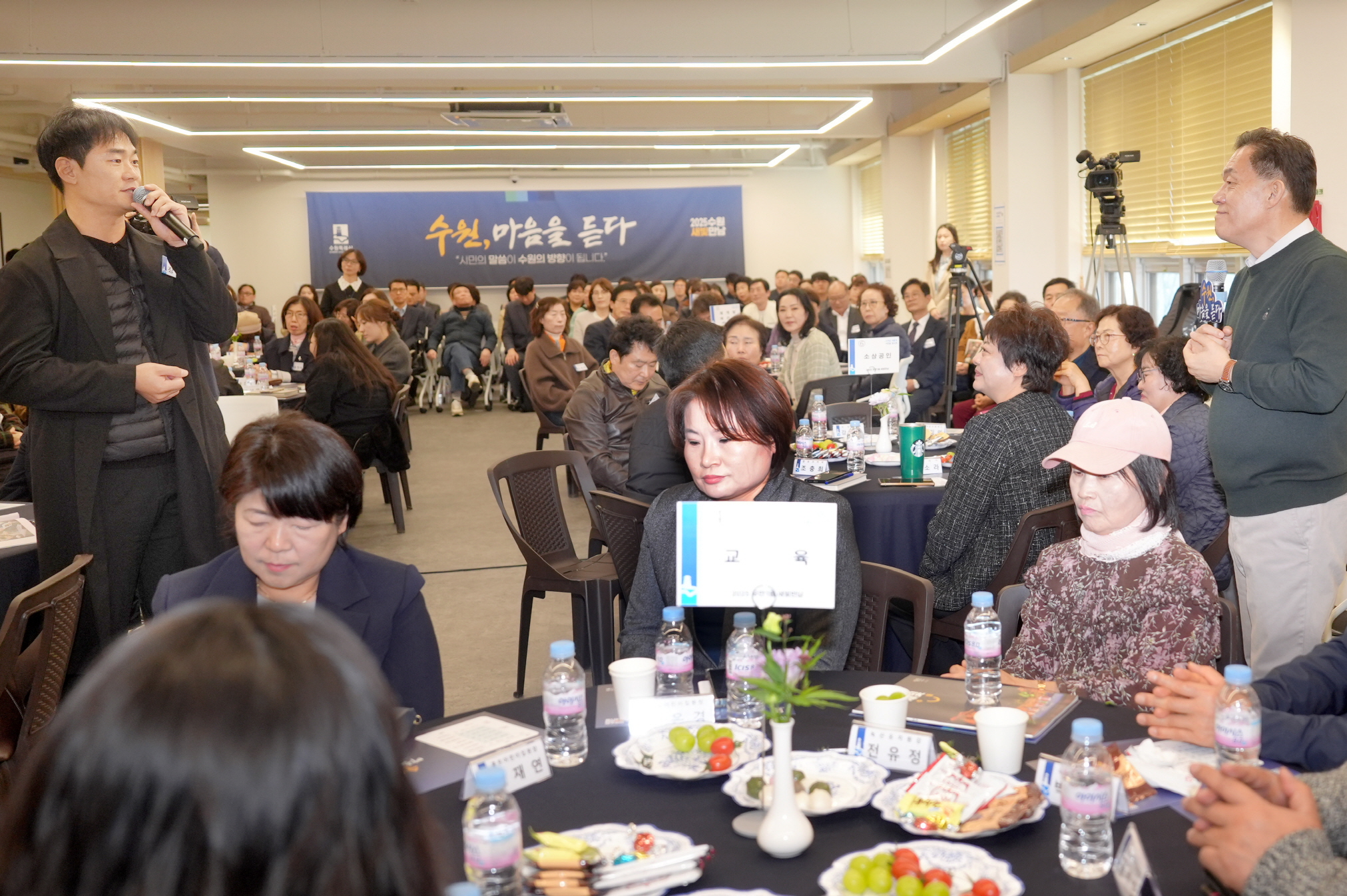 “우만1동은 구옥(舊屋)이 많아서 그런지 하수관에서 악취가 많이 납니다. 냄새를 막으려고 하수관 구멍을 덮어 놓은 경우가 많은데, 비가 많이 오면 배수가 안 돼 문제가 생깁니다. ‘폭싹 담았수다! 시민의 민원함’에 민원을 넣었는데, 구청에서 이틀 만에 연락이 오고, 공무원들이 현장에 나와서 놀랐습니다.” 5일 수원시평생학습관에서 열린 우만1동 새빛만남. 우만1동 새마을지도자협의회 김동준 회장이 지난여름 ‘폭싹 담았수다! 시민의 민원함’에 민원을 넣었던 경험을 이야기하며 수원시에 고마움을 표현했다. 그는 “민원을 제기한 장소 주변 우수관에 자동개폐식 뚜껑을 달아 한결 편리해졌다”며 “자동개폐식 뚜껑을 우만1동 전체에 설치해 주셨으면 한다”고 제안했다. 이재준 수원시장은 “시민을 불편하게 하는 민원을 어떻게 하면 신속하게 해결할 수 있을까 고민했고, ‘폭싹 담았수다! 시민의 민원함’을 운영했는데, 시민들에게 도움이 돼 기쁘다”며 “내년에도 시민의 민원함을 운영하며 시민들에게 불편을 주는 민원을 꼼꼼하게 챙기겠다”고 밝혔다. 우만1동 새빛만남에서는 ‘폭싹 담았수다! 시민의 민원함’에 대한 호평이 이어졌다. 우만종합사회복지관에서 일하는 한 직원은 “폭싹 담았수다에 복지관 근처 버스정류장 환경 개선이 필요하다고 민원을 제기했는데, 빠르게 해결해 주셨다”며 “사용하지 않는 버스카드 충전기는 철거하고, 환경을 말끔하게 개선해 정류장을 이용하는 분들의 만족도가 크다”고 말했다. 수원시는 백성의 목소리의 귀 기울이며 어려움을 꼼꼼하게 살폈던 정조대왕의 애민 정신을 계승해 지난 5월 1일부터 8월 11일까지 100일 동안 ‘폭싹 담았수다! 시민의 민원함’을 운영하며 시민들의 목소리를 들었다. 100일 동안 민원 1658건을 접수했고, 민원의 86%를 해결했다. 시민의 민원함에 대한 시민 만족도는 70%에 이른다. ‘더 살기 좋은 우만1동’을 만들기 위한 제안도 나왔다. 아이 둘을 키운다는 한 시민은 “다른 동네에 있는 ‘청개구리연못’에서 활동하고 있는데, 시설과 프로그램이 너무 좋다”며 “청소년 시설이 적은 우만1동에도 청개구리 연못을 만들어주셨으면 한다”고 요청했다. 이재준 시장은 “창룡도서관에 청개구리 연못 조성을 추진하고 있다”며 “조금 기다려 주시면 가까운 곳에 청소년들이 활동할 수 있는 공간이 생길 것”이라고 말했다. 수원시 교육브랜드 청개구리스펙(SPPEC)의 사업 중 하나인 ‘청개구리연못(Pond)’은 청소년과 학부모가 함께 학습하고 쉴 수 있는 복합문화공간이다. 수원 지관서가에서 카페를 운영한다는 시민은 “지관서가 시설이 정말 좋아서 찾는 이들이 많은데, 주말에 지관서가에서 우만1동 주민들을 위한 프로그램을 운영했으면 한다”고 제안했다. SK케미칼과 수원시는 지난 4월 수원시평생학습관에 시민들을 위한 열린 인문복합문화공간인 ‘수원 지관서가(止觀書架)’를 개관했다. 이날 새빛만남에서는 주민 12명이 이재준 시장에게 다양한 의견을 이야기했다. ‘2025 새빛만남- 수원, 마음을 듣다’는 이재준 시장이 수원시 모든 동(44개)을 방문해 주민들의 목소리를 경청하고, 주민들에게 시정 주요계획과 각 동의 마을 계획을 설명하는 자리다. 이날 우만1동 주민들과 만남은 30번째 새빛만남이었다. 2025 새빛만남은 12월 4일까지 이어진다. |