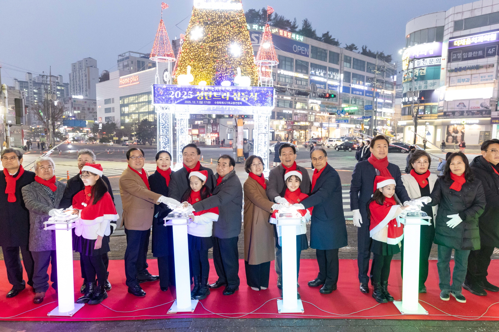 | 2025 성탄트리 점등… 1월 16일까지 장안구청 사거리 교통섬에서 운영 | |||||||||||||