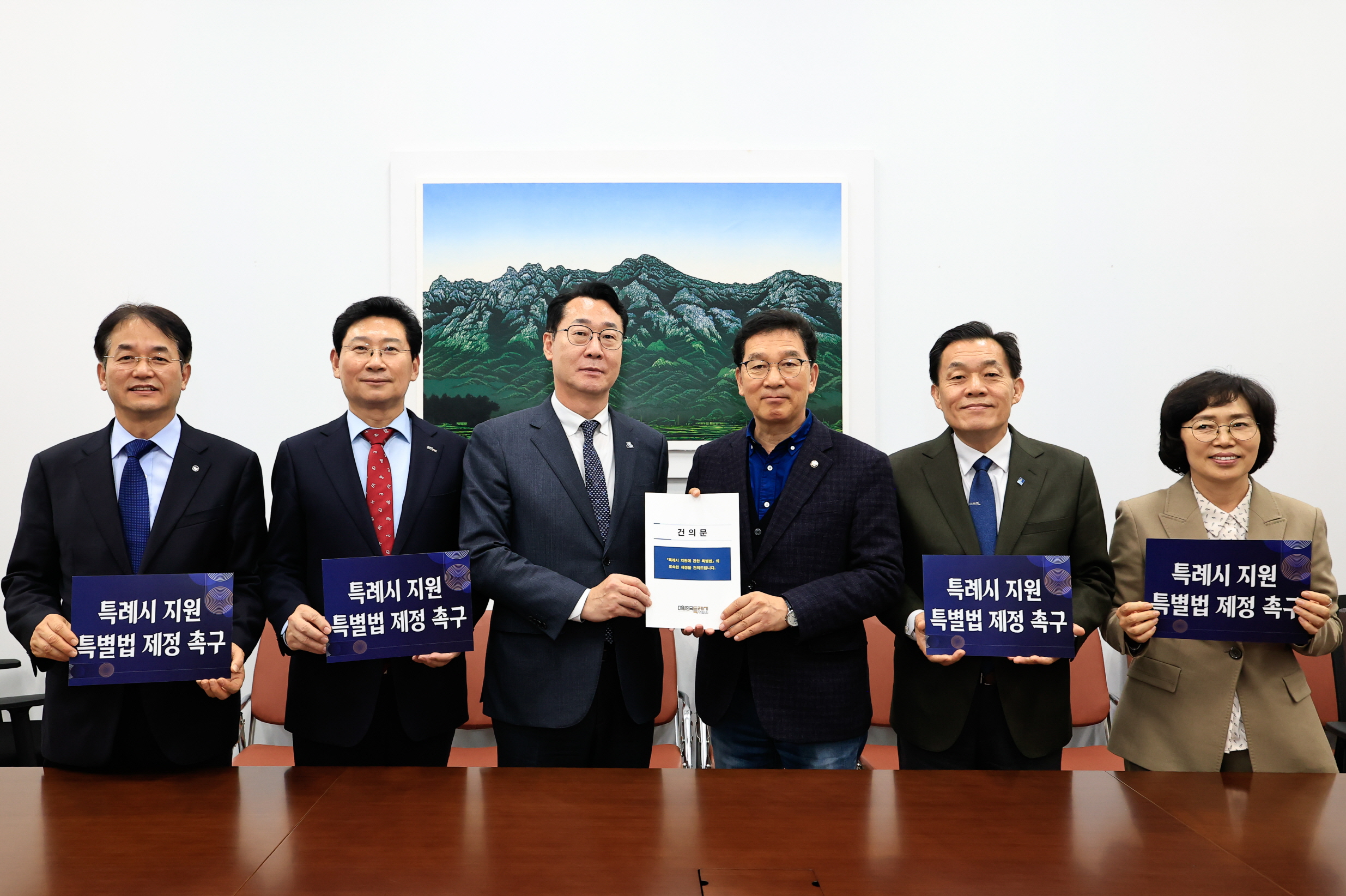 | 대한민국특례시시장협의회, 국회 행안위원장에 ‘특례시 지원에 관한 특별법 제정 촉구 건의문’ 전달 | |||||||||||||
