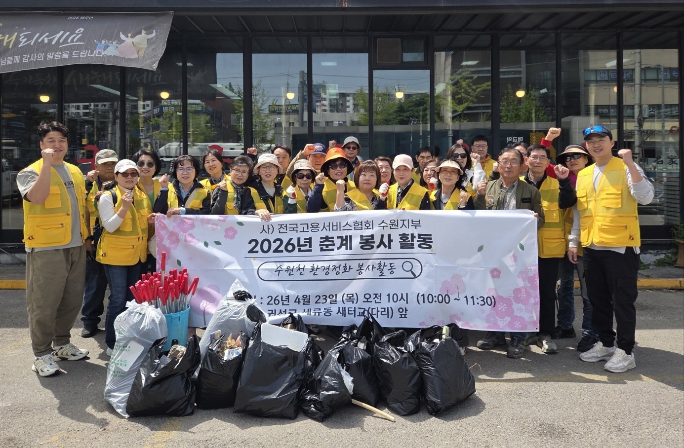 전국고용서비스협회 수원지부, 수원천 일대 춘계 환경정화 봉사활동 새터교~버들교 구간 쓰레기 수거… 지역사회 공헌 앞장