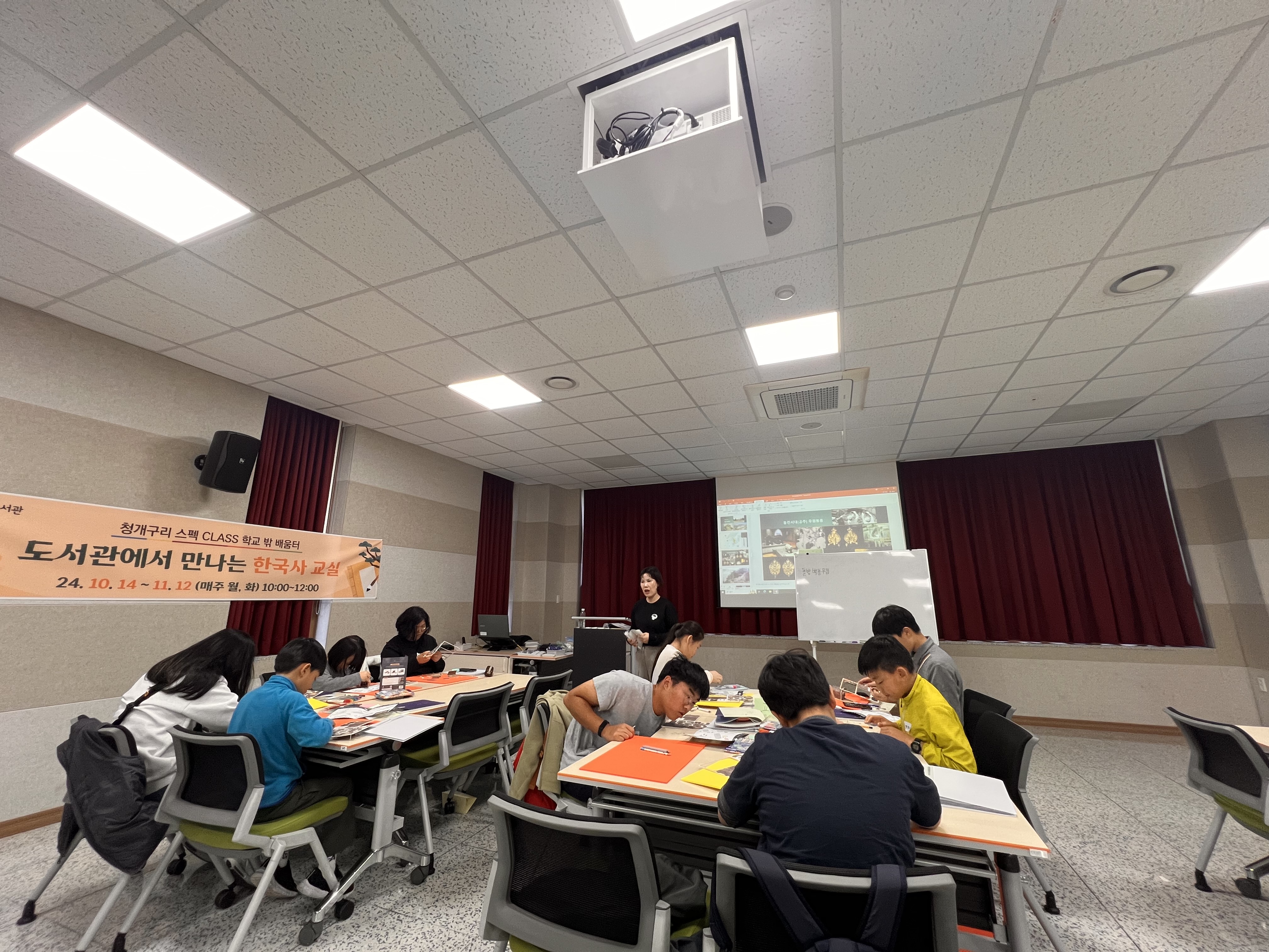 학교 밖 아이들을 위해 개설된 ‘도서관에서 만나는 한국사 교실’을 아이들과 함께 듣고 있습니다.