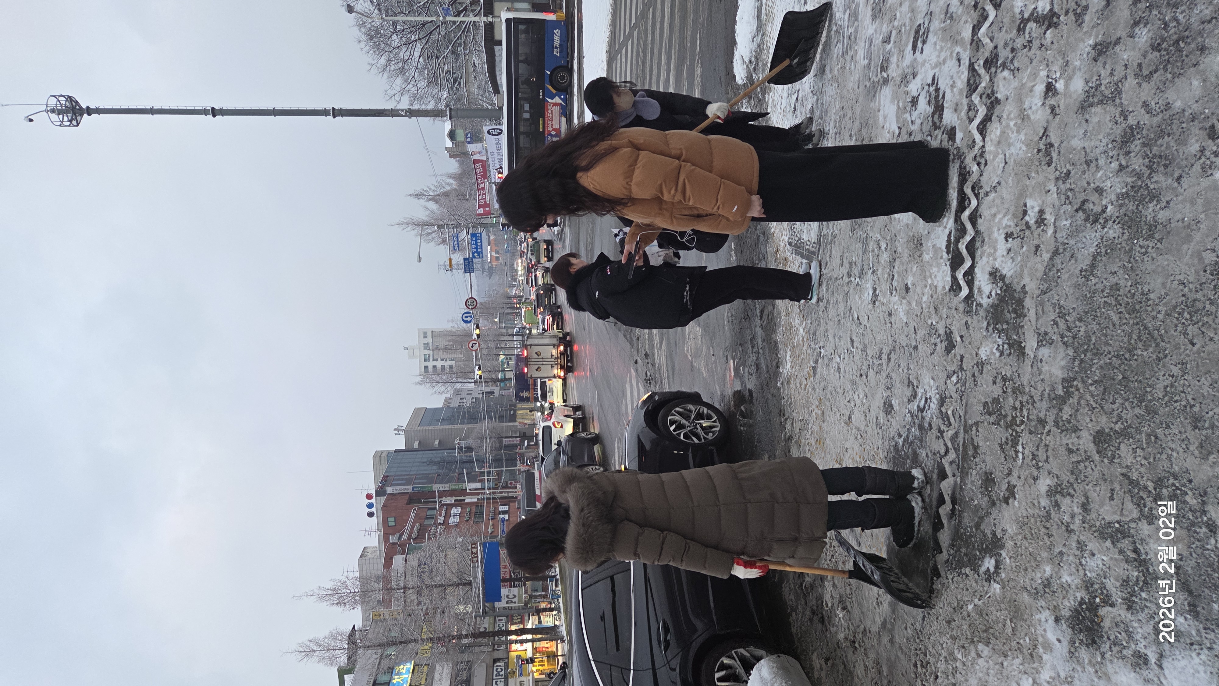 평상시 차를 타고 출되근하는데 갑자기 내린 눈으로 7시반경 전철 타려고 성대역에 왔는데 젊은 직원분들 4명 정도 열심히 눈치우고 염화칼슘을 뿌리더라구요. 요즘 자기집앞 눈도 안 치우는데 공무원이라 이 새벽에 나와서 몸에 익지않은 삽과 씨름하고 있었어요. 너무 감사하고 덕분에 시민 동민들이 안전하게 생활하고있습니다. 너무 감사드려요. 핸폰 보는사람은 신호등 바꾸기 기다리는 시민이예요. 사진을 여러장 찍었는데 한장만 올라가네요. ㅠㅠ